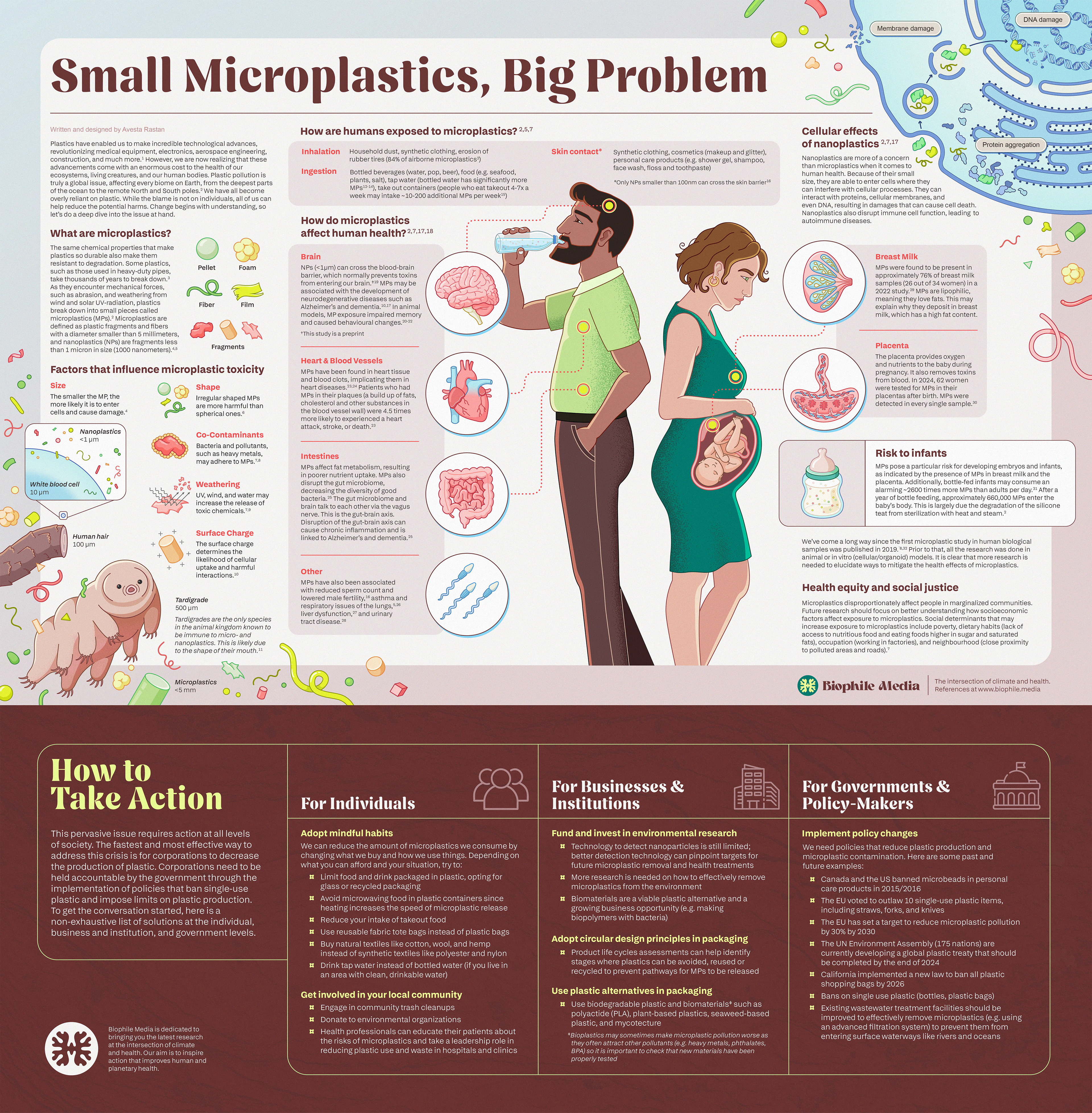 The first project completed for Biophile Media is an infographic that breaks down the effects of microplastics on human health. This project was fully written. designed, and illustrated by myself.