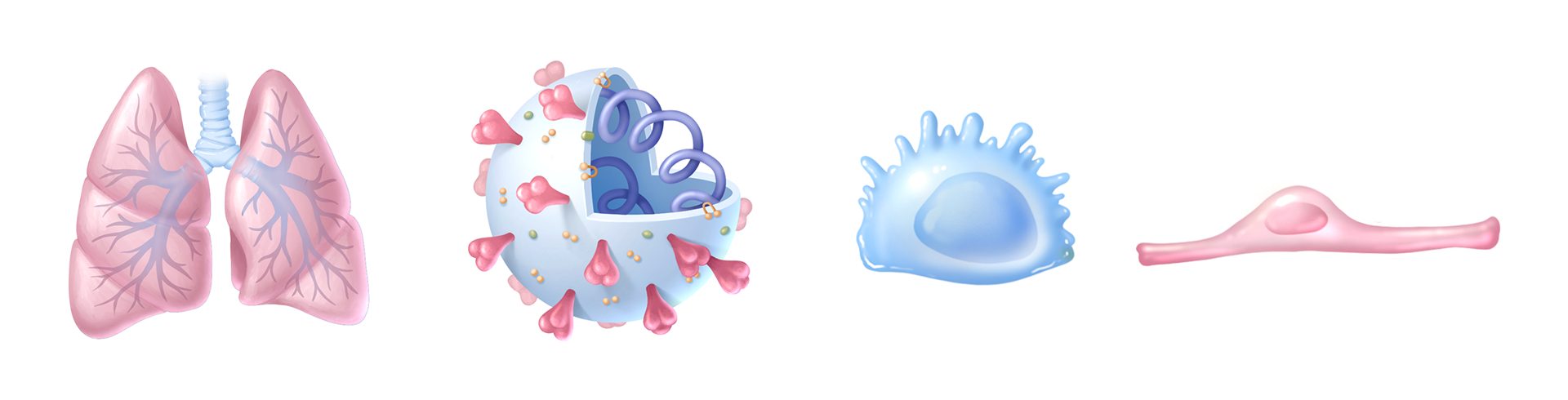 To get started, I did a literature search on recently published papers about COVID-19. I collected any relevant information about its effects on the human body and cross-referenced research done on previous types of coronaviruses. I collected visual references to determine the most effective way to visualize pathology in the alveoli of the lungs. After gathering references and refining my content outline, I created various thumbnail sketches to explore different layout designs.